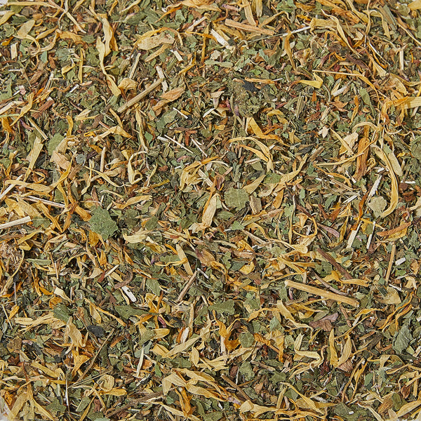 Ingredients: Red Clover (trifolium pratense)*, Nettle (urtica dioica)*, Dandelion Leaf (taraxacum officinale)*, Calendula (calendula officinale)*, Burdock (arctium lappa)*.