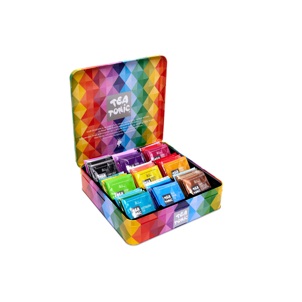 A collection of 63 individually wrapped unbleached teabags, featuring a combination of organic and non-organic blends of the whole Tea Tonic range!