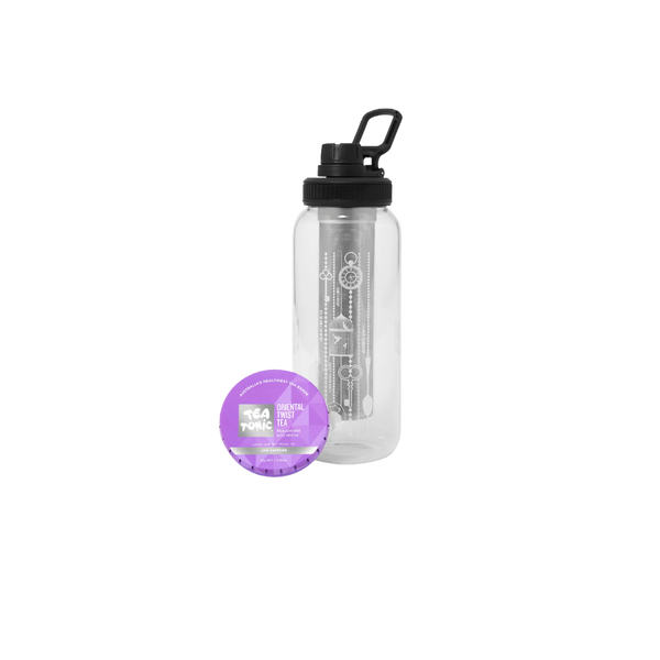 This Glass Tea Bottle 1L comes with a high-quality stainless steel infuser basket and neoprene thermal sleeve to keep your tea hot or cold & for extra protection. Includes a bonus ORIENTAL TWIST Tea Loose Leaf Travel Tin.