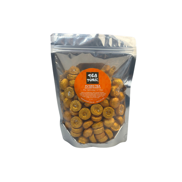 Earthy and incredibly satisfying. The tea leaf is unique to the Yunnan Province in China and is processed naturally to encourage microbial fermentation after the leaves are dried. Stored for many years allowing for this process, Pu'erh Tea contains naturally occurring probiotics. It pairs well with rich desserts and is traditionally consumed after meals. Each golden nugget will make up to four infusions without losing its distinctive taste, each infusion taking on a slightly different flavour profile.